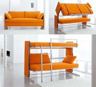 Диван-кровать может быть стандартным либо трансформируемым в двухъярусную конструкцию, снабженную вместительным отсеком под спальные принадлежности. Встроенная двуспальная кровать-трансформер может комбинироваться со столом. Модель используется в оформлении подростковых и детских пространств.