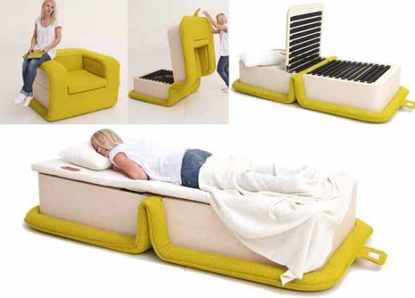 Очень компактная кровать-трансформер для интерьерных решений в стиле минимализм