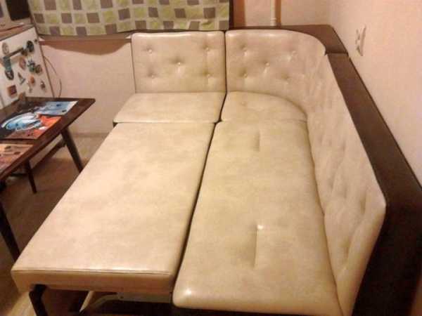 кухонные диваны со спальным местом , раскрывающиеся как аккордеон — тоже удобны для кухни. Основная часть спального места скрывается в спинке, закрытой подобно книжке. Конструкция в сложенном состоянии занимает мало места, и применяется даже на угловых моделях.