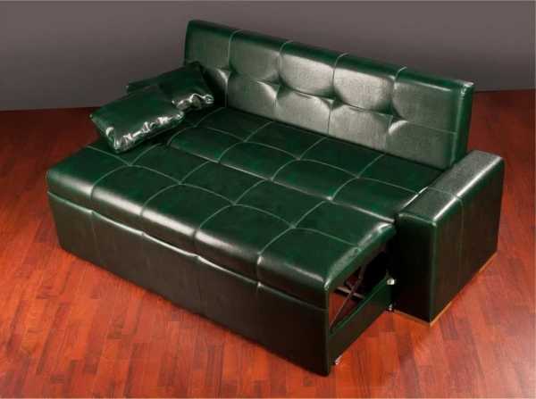 Популярный вид раскладного механизма диванаНижняя часть снабжена колёсиками и выкатывается из-под сиденья при необходимости. Этот механизм часто используется в кухонных уголках и считается одним из самых удобных, так как очень легко раскладывается и занимает мало места. Кроме того, большой ящик этого дивана никогда не будет лишним на кухне.