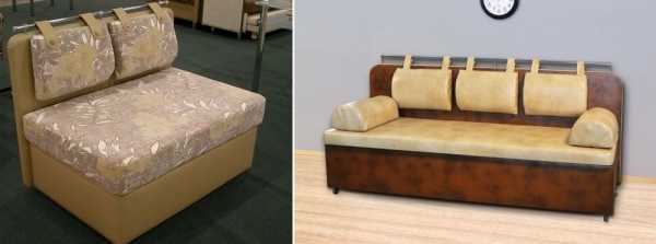 Интересное решение для кухниПо внешнему виду они могут быть без элементов дизайна или иметь подушки на липучках. На фото привела несколько примеров маленьких диванов.