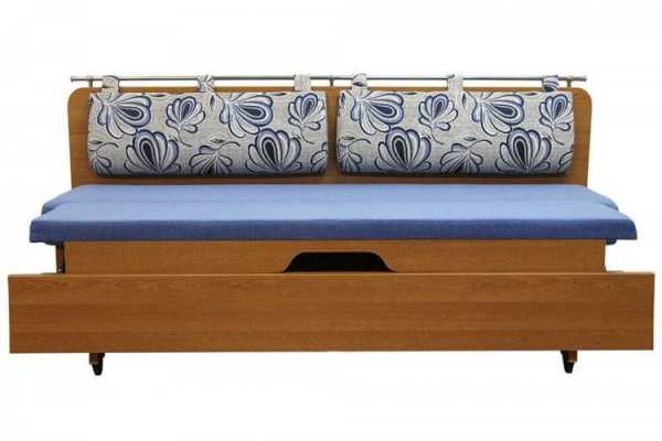 Среди диванов-трансформеров раскладушки стоят особнячком. Конструкторы в этой категории мебели совместили мягкий диван и металлическую раскладушку, которые когда-то стояли практически в каждом доме, решая проблему жизненного пространства. Устройство раскладушки, оснащенной собственным матрасом, складывается троекратно и прячется в просторном ящике дивана. Такая мебель имеет солидный запас прочности и может эксплуатироваться повседневно. Поэтому, если вам нужен небольшой диван на кухню со спальным местом, который предполагается использовать каждый день, выбирайте раскладушку. В сравнении с другими моделями, цена на порядок выше, но долговечность раскладушки того стоит.