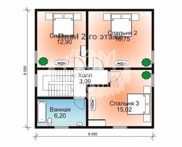 Смотрите также подробный проект двухэтажного дома 8 на 8.