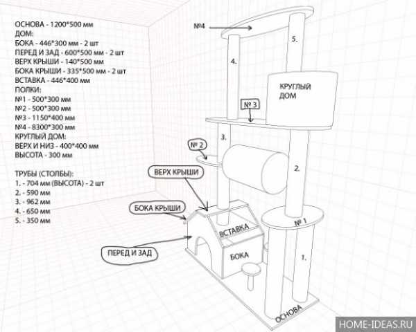 Дом для кошки своими руками, чертежи, фото, видео, как и из чего сделать.
