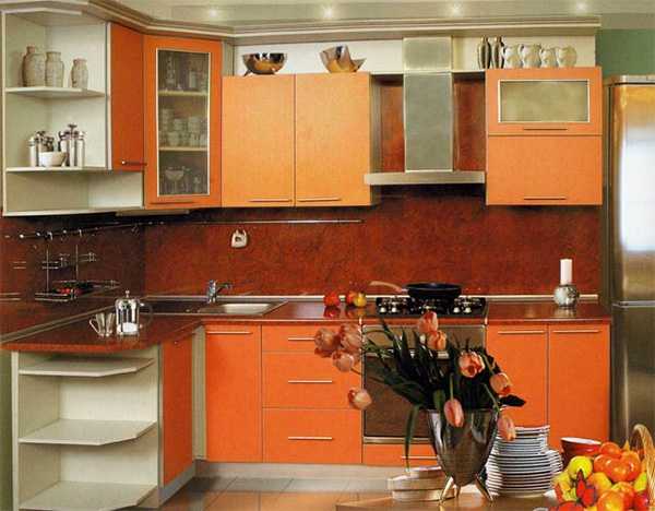 У пластика есть множество преимуществ, но его нельзя назвать универсальным материалом. Это бюджетный вариант оформления стены между столешницей и верхними шкафчиками. Однако он выглядит вполне презентабельно. На фото ниже – образец пластикового фартука в интерьере кухни.