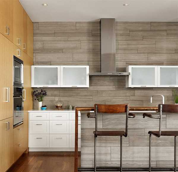 Разумеется, если взять во внимание возможные нагрузки, влияние высоких температур и агрессивных веществ, оптимальным вариантом кухонного фартука будет плитка. Керамика надежнее и способна хорошо противостоять внешним воздействиям, легче в уходе и по-домашнему уютная.