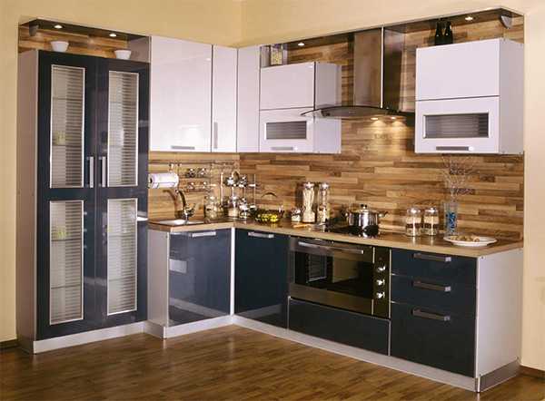 - Вариант с пластиковой вагонкой или ламинатом. Также часто используется в интерьере в основном домашними умельцами, которые самостоятельно выполняют монтаж. На фото готовых дизайн-проектов можно увидеть использование ламината в качестве отделки фартука и стен. Он не требует тщательного выравнивания стен, но желательно все-таки укрепить поверхность перед монтажом.