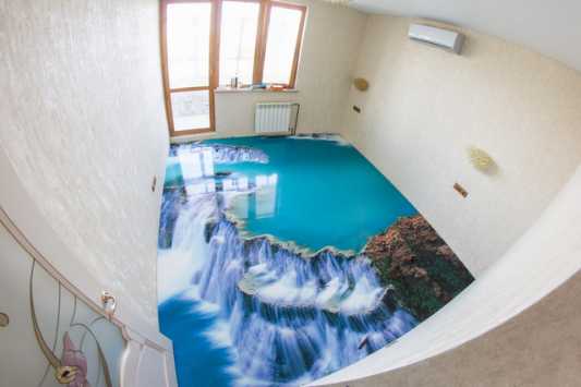 Наливной 3Д пол впечатляет своей красотой несмотря на высокую цену. Покрытие не только может дополнить дизайн комнаты, но избавить от необходимости покупки ковра. Эффективен, имеет большой срок эксплуатации.