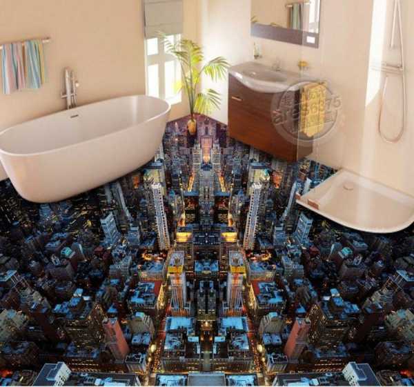 Полимерный пол в ванной 3d способен правдоподобно имитировать самые разнообразные поверхности.