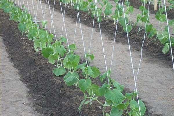 Подкормку делают не больше четырёх раз за сезон. Первая осуществляется в период появления всходов. Для этого используют коровяк, куриный помёт, мочевину, суперфосфат или сульфат калия. В процессе плодоношения делают упор на калиевые и азотистые смеси. Грядки с огурцами можно подкармливать внекорневыми удобрениями. Процедуру проводят 1-2 раза в месяц и применяют для этого аммиачную селитру, суперфосфат или сульфат калия. Прищипывание и подвязывание. Прищипывают ростки после появления шестого листочка. Это способствует ветвлению кустов и увеличению урожая. Правильнаяогуречная посадка должна быть обязательно подвязана. В землю вбивают деревянные колышки и натягивают между ними бельевую верёвку или леску. Подвешивание плетей защищает их от гниения и бактерий.