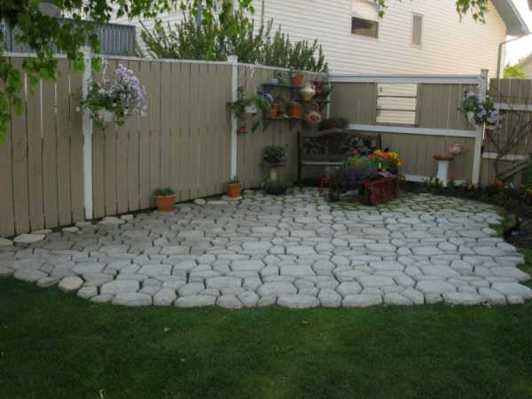 Если заливать цементную смесь в пластиковые контейнеры, добавить листья, то получются необычные плиты для выкладывания садовых дорожек.