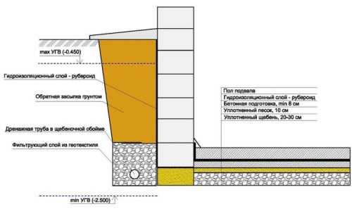 Для наилучшей защиты конструкций от воды (помимо самой изоляции) рекомендуется сделать дренажную систему.