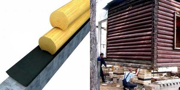 При применении винтового основания, на столбы, которого сразу укладывается первый ряд деревянного дома, изоляция обустраивается гидроизоляция между фундаментом и стеной.