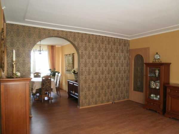 Всем известный и достаточно бюджетный вариант для отделки гостиной. Большой выбор расцветок и узоров, простота поклейки делают их наиболее востребованными. Стены под бумажные полотна должны быть идеально ровными, в противном случае будут видны все их изъяны. Оклейку поверхности следует производить аккуратно, потому что бумажная основа обоев часто рвётся, а внешняя часть может терять внешний вид от сильного трения. Также, выбирая данный вид настенного покрытия, нужно учитывать возможность быстрого их выгорания. Фото примеры зала, оклеенного бумажными обоями, дадут возможность оценить интерьер в данном оформлении.