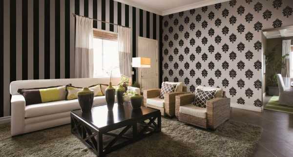 Комбинирование разных видов – это один из лучших вариантов в современном интерьере гостиной. Это тот случай, когда можно экспериментировать. Используйте одновременно несколько вариантов, только не забывайте расставлять акценты. Варианты с вертикальными и горизонтальными полосами, бордюрами помогут сделать интерьер гостиной стильным.