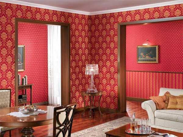 Важным моментом в выборе цвета настенного покрытия является уровень освещённости помещения. В гостиных, расположенных на северной стороне дома, дефицит солнечного света можно компенсировать, подобрав обои максимально светлых и ярких оттенков, например, бежевый, оранжевый или даже красный.