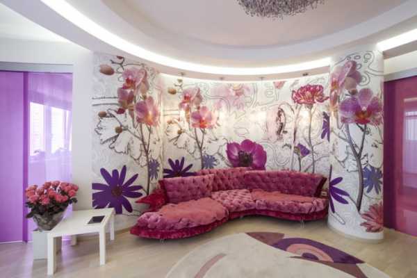 Принт с изображением цветов не теряет своей популярности. До сих пор можно найти обои с мелким провинциальным рисунком с ромашками. Однако сейчас модные тенденции претерпевают изменения: популярны крупные цветы, а также насыщенные контрастные оттенки. Дизайн интерьера с вариантами подобных рисунков позволит вам создать визуальный фокус в комнате.
