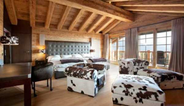 Особенно в шале ценятся открытые конструктивные элементы – стойки, балки, перемычки.
