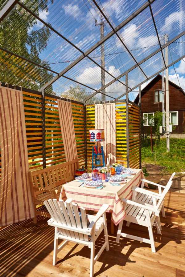 Значительно расширяет пространство дачного домика эконом-класса веранда. Они бывают двух типов: закрытые и открытые. В свою очередь, закрытые веранды могут быть с частичным остеклением и сплошным – французским. Их строительство не займет много времени и не потребует больших средств. Зато такая пристройка в домике станет хорошей площадкой для отдыха, приема гостей, семейного обеда. Остекленные веранды удобны тем, что защищают от ветра и непогоды, в то же время оставляя широкий обзор ухоженного зеленого двора.