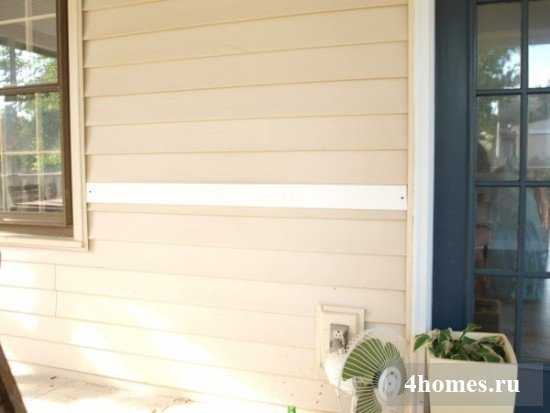 На стену дома вместе крепления деревянной полочки мы саморезами прикрутили рейку.