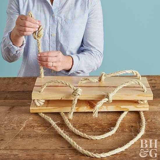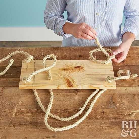 Нет DIY-проекта проще. Все, что вам нужно будет сделать, это просверлить отверстия в деревянных досках, а затем продеть в них веревки, на которых она и будет висеть.
