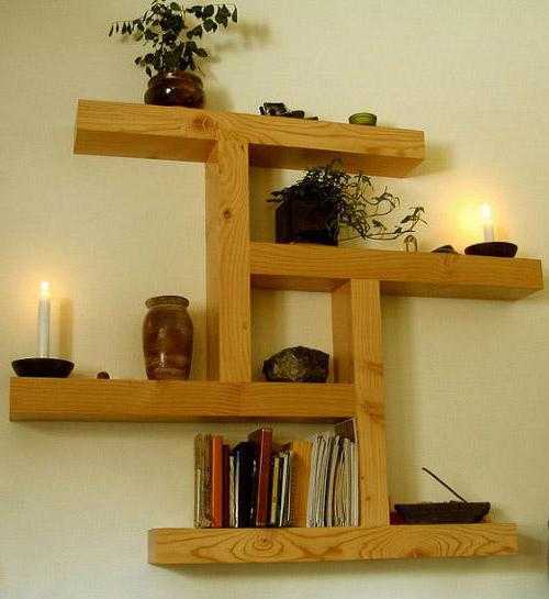 Итак, вы хорошо продумали каждую мелочь и определились с дизайном и размерами. Теперь можно начинать делать деревянные полки. Для начала из досок при помощи пилы или лобзика вырезаются детали нужных размеров. Они обрабатываются шлифовальной машинкой и средством для защиты дерева. Как только все детали высохнут, вы можете собирать конструкцию, используя гвозди и шурупы. Готовую полку можно покрасить или же сохранить её природный цвет. Всё зависит от дизайна вашего интерьера.