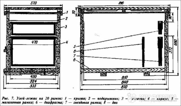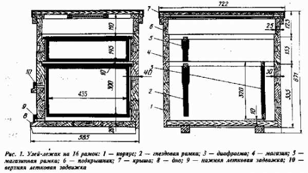 Улей-лежак на 16, 20 и 24 рамки: чертежи и размеры