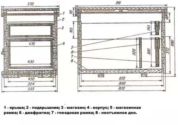 Классическая конструкция ульяИнструкция домика для пчел с чертежами