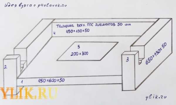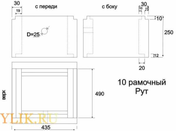 - Выпиливаются внутренние стенки будущей конструкции — передняя, боковая и задняя. Толщина досок — примерно 20 мм. Соединять их следует с помощью казеинового клея или шпунта.