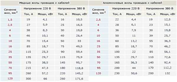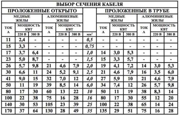 ΠΡΠΈ ΡΡΠΎΠΌ ΡΠ΅ΠΊΠΎΠΌΠ΅Π½Π΄ΡΠ΅ΡΡΡ Π²ΡΠ΅ ΠΆΠ΅ Π²ΡΠ±ΠΈΡΠ°ΡΡ ΡΠ΅ΡΠ΅Π½ΠΈΠ΅ Π½Π΅ΠΌΠ½ΠΎΠ³ΠΎ Ρ Π·Π°ΠΏΠ°ΡΠΎΠΌ, ΡΠΎ Π΅ΡΡΡ Π±Π»ΠΈΠΆΠ°ΠΉΡΠ΅Π΅ Π±ΠΎΠ»ΡΡΠ΅Π΅ ΡΡΠ°Π½Π΄Π°ΡΡΠ½ΠΎΠ΅ Π·Π½Π°ΡΠ΅Π½ΠΈΠ΅. ΠΠ°ΠΏΡΠΈΠΌΠ΅Ρ, Π½Π°ΠΏΡΡΠΆΠ΅Π½ΠΈΠ΅ Π² ΡΠ΅ΡΠΈ ΠΎΠ΄Π½ΠΎΡΠ°Π·Π½ΠΎΠ΅ 220 ΠΠΎΠ»ΡΡ ΠΈ Ρ Π²Π»Π°Π΄Π΅Π»ΡΡΠ° ΠΏΠΎΠΌΠ΅ΡΠ΅Π½ΠΈΡ Π΅ΡΡΡ Π½Π΅ΠΎΠ±Ρ ΠΎΠ΄ΠΈΠΌΠΎΡΡΡ Π·Π°ΠΏΠΈΡΠ°ΡΡ ΠΏΡΠΈΠ±ΠΎΡΡ ΠΌΠΎΡΠ½ΠΎΡΡΡΡ, Π΄ΠΎΠΏΡΡΡΠΈΠΌ, 7 ΠΊΠΡ. Π‘ΠΎΠ³Π»Π°ΡΠ½ΠΎ ΡΠ°Π±Π»ΠΈΡΠ΅ Π½Π΅Ρ ΡΠ°ΠΊΠΎΠΉ ΠΌΠΎΡΠ½ΠΎΡΡΠΈ, Π° Π΅ΡΡΡ 5,9 ΠΈ 8,3 ΠΊΠΡ. ΠΠ»Ρ ΠΌΠ΅Π΄Π½ΠΎΠΉ ΠΏΡΠΎΠ²ΠΎΠ΄ΠΊΠΈ ΠΏΠΎΠ½Π°Π΄ΠΎΠ±ΠΈΡΡΡ ΠΊΠ°Π±Π΅Π»Ρ Ρ ΡΠ΅ΡΠ΅Π½ΠΈΠ΅ΠΌ ΠΆΠΈΠ»Ρ 4 ΠΌΠΌ2. ΠΡΠ»ΠΈ Π±ΡΠ΄ΠΆΠ΅Ρ ΠΎΠ³ΡΠ°Π½ΠΈΡΠ΅Π½ ΠΈ ΡΡΠΎΠΈΡ Π·Π°Π΄Π°ΡΠ° Π²ΡΠΏΠΎΠ»Π½ΠΈΡΡ ΠΏΡΠΎΠ²ΠΎΠ΄ΠΊΡ ΠΈΠ· Π°Π»ΡΠΌΠΈΠ½ΠΈΡ, ΡΠΎ Π±Π»ΠΈΠΆΠ°ΠΉΡΠΈΠΉ Π±ΠΎΠ»ΡΡΠΈΠΉ ΡΠΊΠ°Π·Π½ΡΠΉ Π² ΡΠ°Π±Π»ΠΈΡΠ΅ ΠΏΠ°ΡΠ°ΠΌΠ΅ΡΡ Π±ΡΠ΄Π΅Ρ 7,9 ΠΊΠΡ, ΡΡΠΎ ΡΠΎΠΎΡΠ²Π΅ΡΡΡΠ²ΡΠ΅Ρ ΠΆΠΈΠ»Π΅ 6 ΠΌΠΌ2.