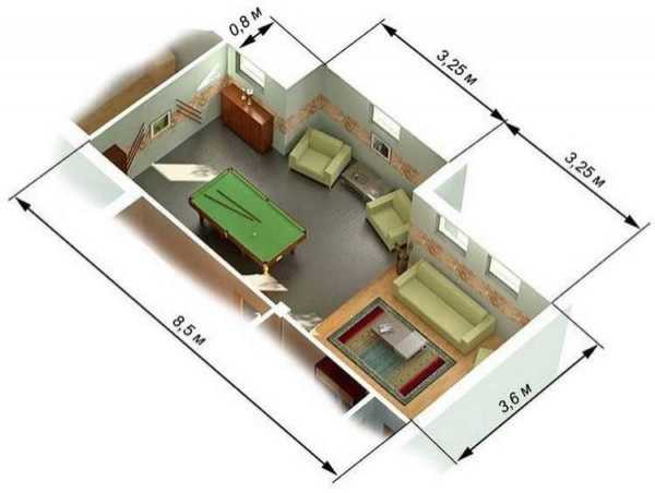 - Считаем квадратуру без выступа: 3,6 м * 8,5 м = 30,6 кв. м.