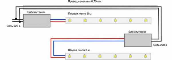 СхемаСхема подключения очень проста — нужно позаботиться только о подключении нескольких проводов. Соблюдаем нужные полярности и никаких проблем не возникнет. Если подключается к сети цветная ЛЕД лента, то используем цветовую маркировку в качестве «карты» соединения.