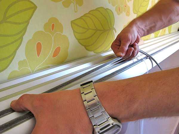 Они разборные, поэтому предварительно отсоединяется скоба, и роликовый механизм помещается в полость направляющей.