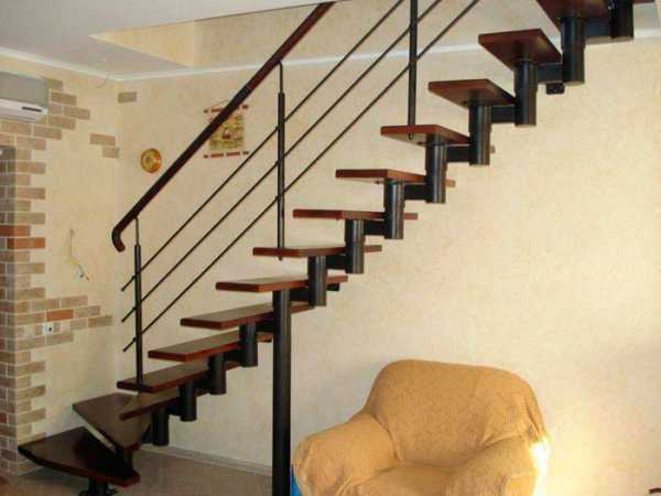 Эта конструкция нашла применение в устройстве винтовых видов. Один, зауженный конец ступени закрепляется на вертикальной несущей опоре, и при правильном расположении, все ступени образовывают винтовой марш. Большой плюс в такой системе состоит в том, что она не занимает много места.