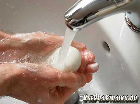 - Мыло. Как только клей попал на руки, сразу же намочите их в теплой воде, после чего тщательно намыльте туалетным или банным мылом. Обратите внимание, что данный способ эффективен только с незатвердевшим веществом. В случае его застывания следует обратить внимания на другие методы.