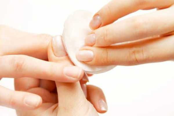 Толстый слой клея необходимо осторожно счистить пилочкой. Желательно работать только с клеевой пленкой, не задевая ногтевую пластину. Затем пальцы погрузить в теплую воду и подержать некоторое время. Далее ватный диск смачивают жидкостью для снятия лака или растительным маслом. Средство прикладывают к ногтю на 1 минуту. После этого аккуратно нужно потереть оставшиеся загрязнения. Они должны полностью сойти.