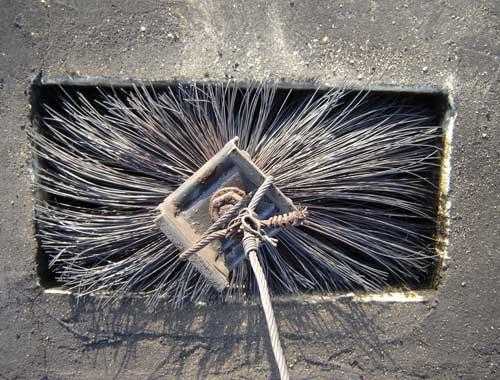 Для очистки кирпичных дымоходов, имеющих прямоугольное сечение, применяют щетку — тоже металлическую.