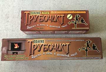 Последнее средство, выпускаемое в форме брикета, при сжигании подсушивает отложения копоти, вследствие чего та осыпается вниз. Эффективен «Трубочист» и как профилактическое средство. Благодаря ему уменьшается вероятность образования креозотистых отложений и устраняется опасность воспламенения сажи. Все это положительно отражается на долговечности дымохода. Данное средство пригодно для очистки дымовых труб котлов – твердотопливных и жидкотопливных.
