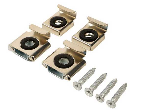 Четыре крепежных комплекта фурнитуры доработаны для крепления зеркала на кирпичной или бетонной стене. Для крепления зеркал на стене из гипсокартона придется заменить штатные цилиндрические дюбели специальными, которые называются «Бабочка».
