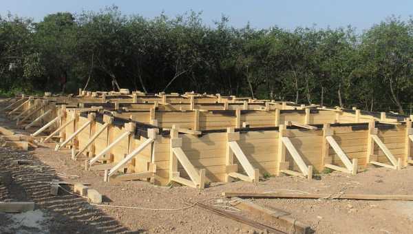 Ленту фундамента заливают в подготовленные заранее траншеи. Бетон для заливки можно замешивать самостоятельно. Перед заливкой в траншеи насыпают слой песка и тем самым делается так называемая песчаная подушка (толщина до 100 мм) и укладывают металлические арматуру.