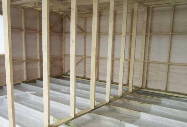 Каркас внутренних стен собирают из стеновых шаблонов аналогично наружным стенам. Внутренние простенки не несут большой нагрузки, и потому могут быть выполнены из доски меньшего сечения.