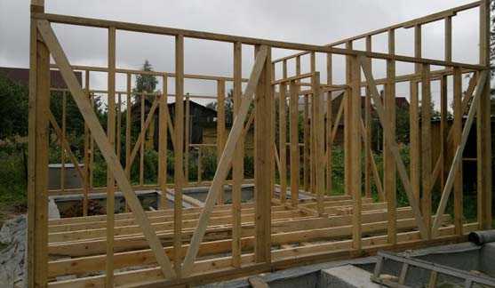 Углы каркаса несут максимальную нагрузку. Поэтому их собирают из двух или трех опорных досок.