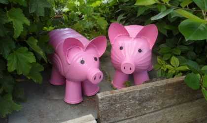 Пластиковые бутылки легко режутся, им несложно придать нужную форму. А если покрыть результат работы подходящими красками, то получаются яркие, неповторимые декорации для дачи. Например, можно сделать фигурки животных(поросята, коровы, пчелки) или сказочных героев. Изготавливая подобные декорации, можно раскрыть свой творческий потенциал, и с каждым разом поделки будут все совершеннее. При большом количестве ненужного пластика, из него делают не только поделки, но и предметы мебели.