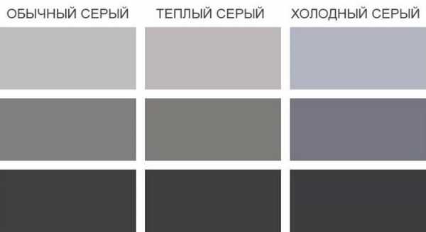 Серый и белый используют как базовые и дополнительные, реже — как декоративные цвета. Дизайнеры выделяют дымчатый, оловянный, свинцовый, пепельный, графитовый, стальной и другие тона серой палитры.