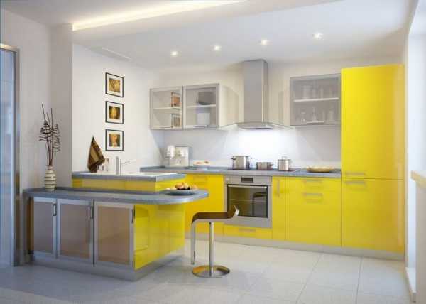 Так что, если кухня довольно маленькая и места разгуляться особо нет, то смело выбирайте стиль минимализм и серо-желтый дизайн. Эти два цвета спокойно могут быть равноправными базовыми цветами.