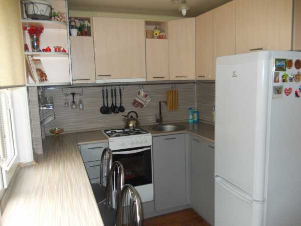 Если стены имеют светло-серый цвет, гарнитур следует выбирать примерно на 1-2 тона темнее. Пол в таком помещении может быть более темным, почти черным. Чтобы наполнить маленькую кухню светом, стоит активно использовать стеклянные и глянцевые поверхности.