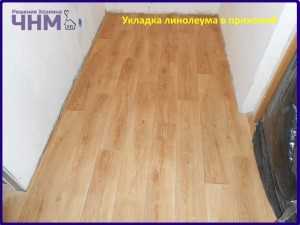 Следующим этапом работ будет подготовка линолеума. Его нарезают по размеру, но с запасом по 5см с каждой стороны, и дают возможность отлежаться в помещении два-три дня для того, чтобы материал расправился. При раскрое следует обратить внимание на рисунок, чтобы на готовом покрытии не появились несовпадения или сдвиги.