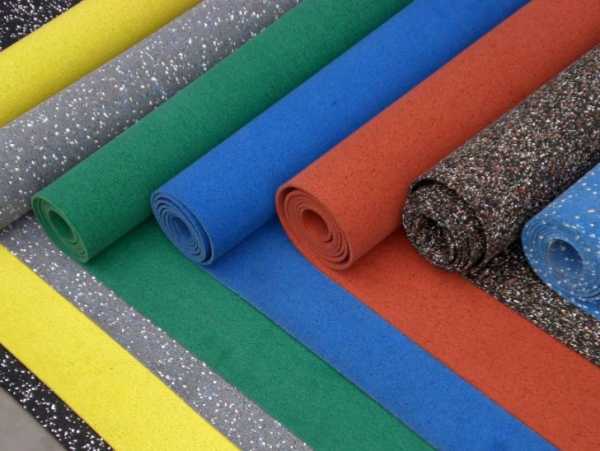 Резиновый линолеум может быть яркимОбладающие отличными водоотталкивающими качествами, эластичные и предотвращающие скольжение покрытия применяются при обустройстве стадионов, спортивных площадок и плавательных бассейнов. В домах и квартирах такие материалы использовать не следует, так при эксплуатации они выделяют в окружающее пространство вредные компоненты.