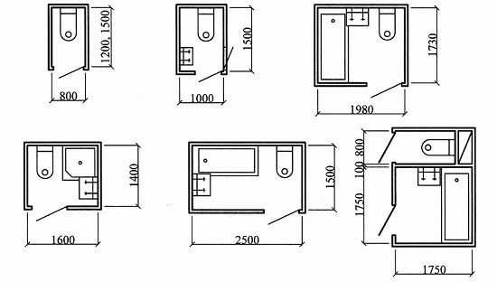 Размеры совмещенных санузлов имеют свою градацию: маленькие (198-173 см), средние (250х150 см), большие (290х200 см). Эти стандарты определены для «хрущевок» и панельных многоквартирных домов. Архитектурная планировка этих зданий может включать не полноценные ванные комнаты или совмещенные санузлы с установленными в них ваннами, а санузлы с душевыми кабинами. Стандартные размеры таких помещений 140х150 см.