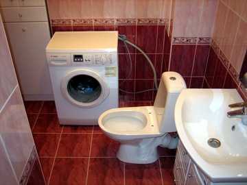 Конечно, придется отказаться от ванны в пользу дешевой кабины или панели, но при правильной расстановке сантехники можно поместить даже узкую стиральную машину.